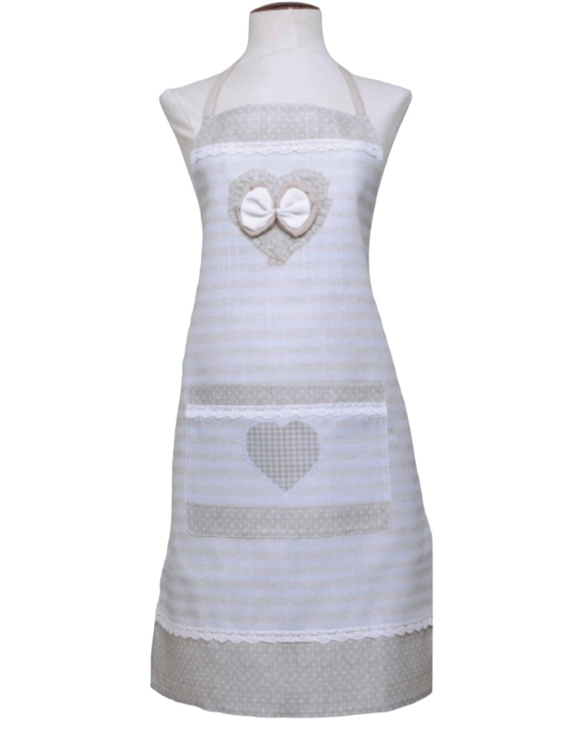 Delantal de estilo clásico en tonos beiges y blancos, con lazo y diseño de encaje. Posee un bolsillo en la parte central con una gran capacidad. Talla única.