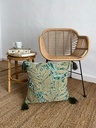 Cojín con diseño bordado de hojas con borlas en las esquinas, liso al reverso. Cierre con cremallera. Incluye relleno.